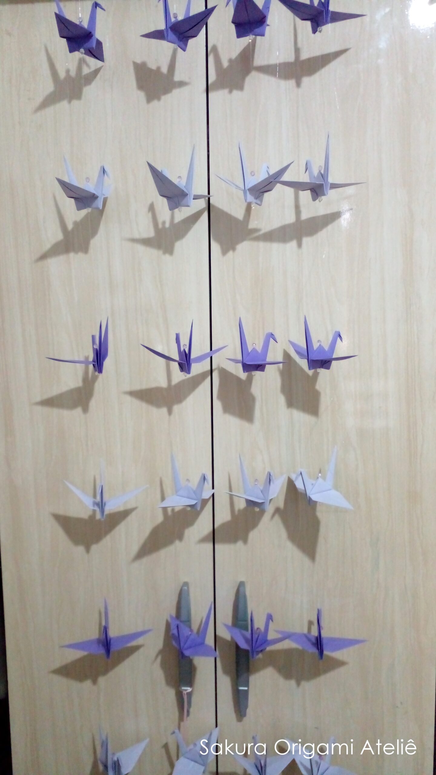 Como todos os fios possuem o mesmo comprimento, quantidade de tsuru e todos os tsurus são do mesmo tamanho, a cortina ficará linda!